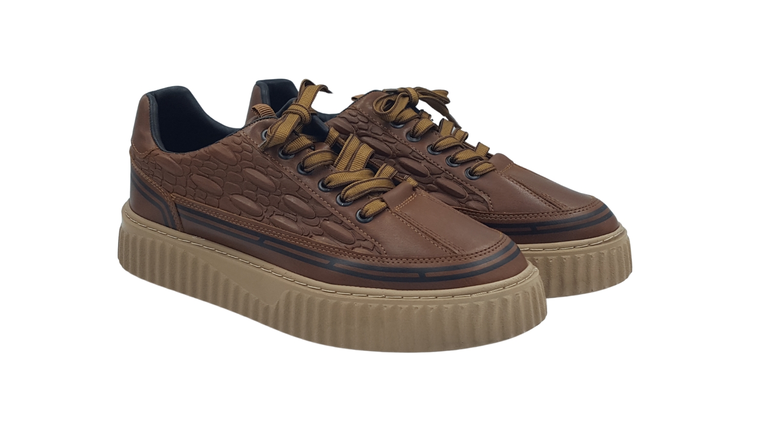 Ανδρικά Snaekers από τεχνόδερμα σε Ταμπά χρώμα. Έχει μαλακό πάτημα και αντιολισθητική σόλα.